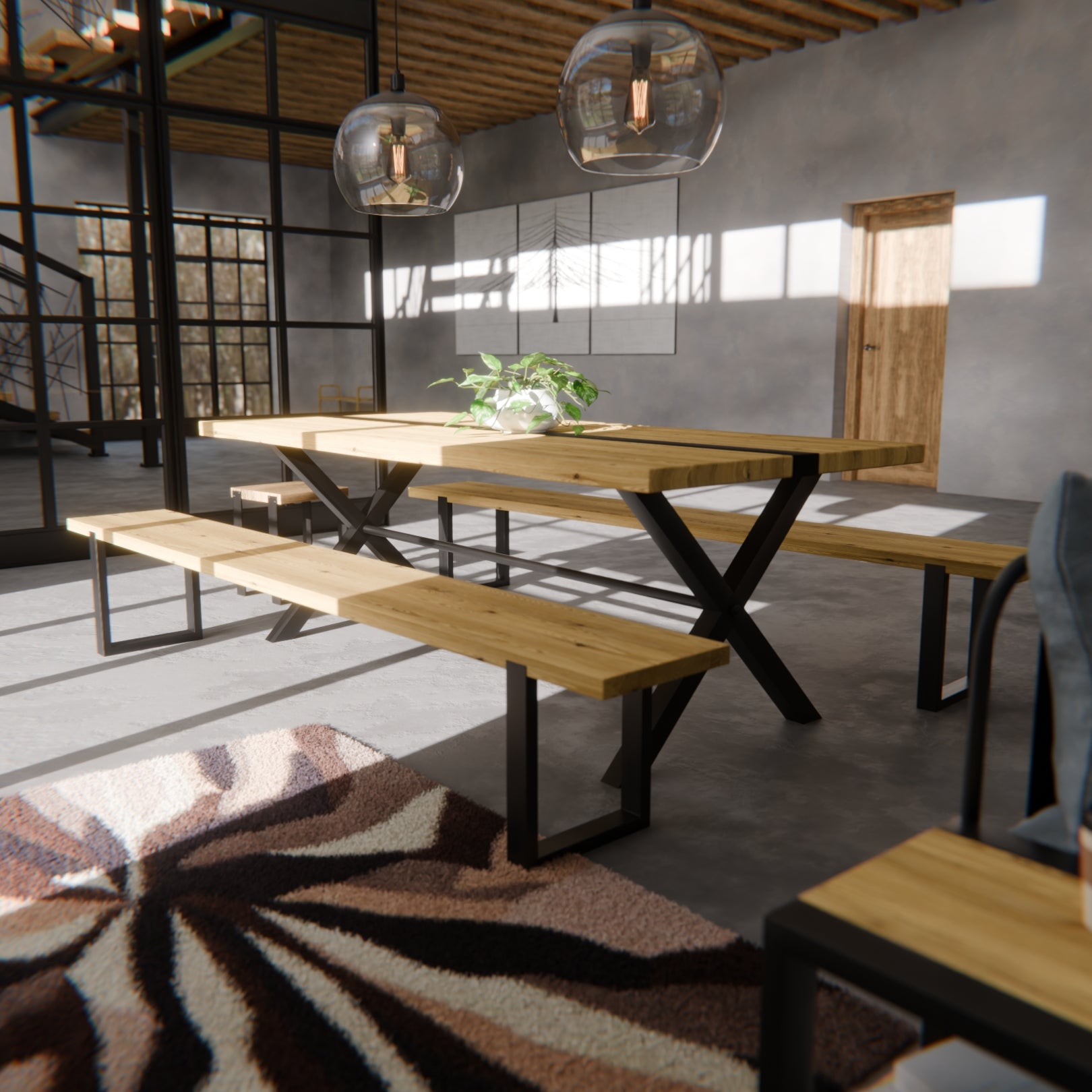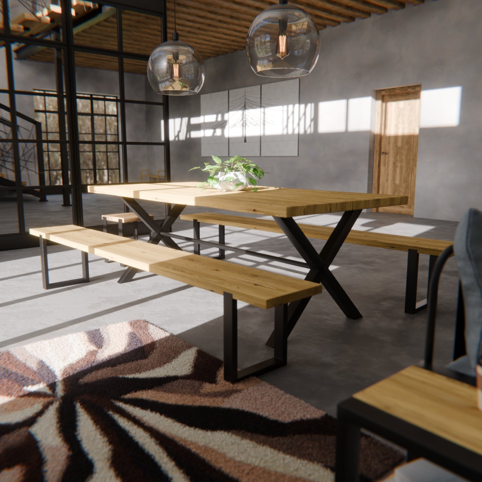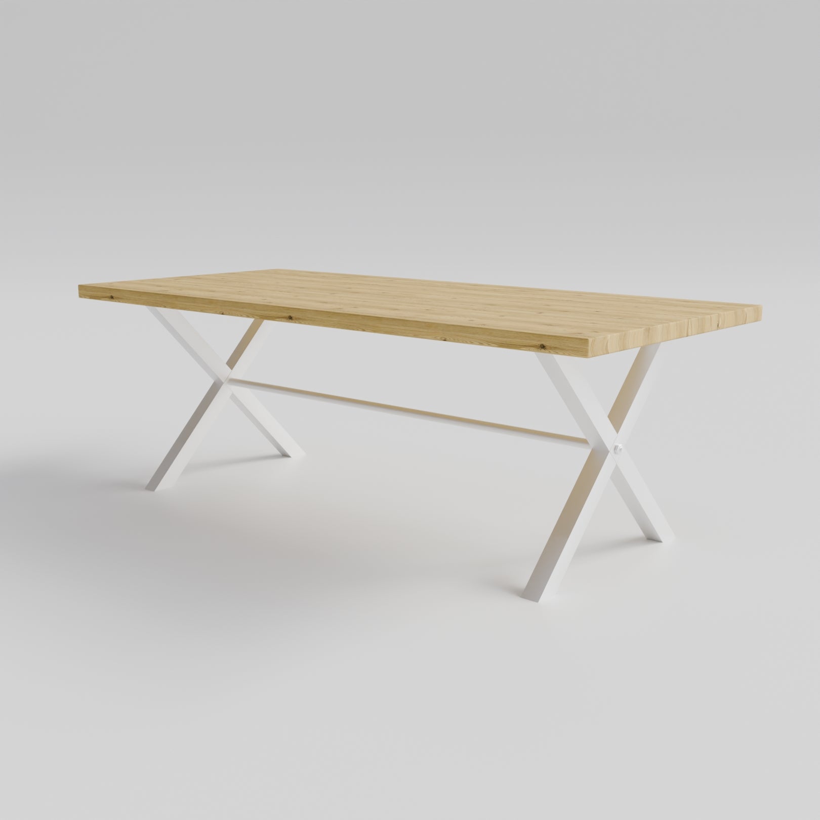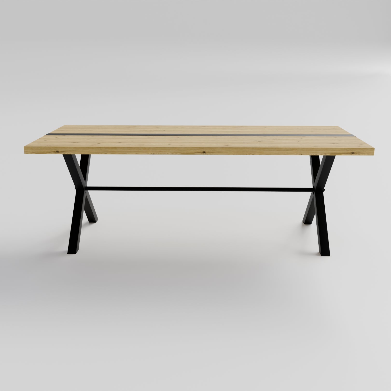 Table pied acier en X plateau chêne